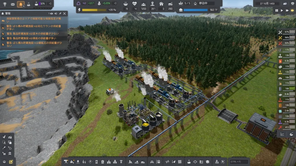 以前Captain of Industry(邦題: 産業キャプテン)という工場自動化ゲームをプレイしたときの記事を書きましたが、その後Update 3がリリースされたのであらためて新規プレイをしてみました。プレイ時間400時間ほどで最終目標までクリア。せっかくなので工場を紹介していきたいと思います。