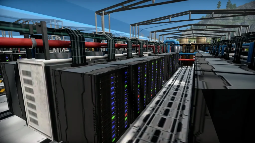 データセンターの中を覗くとサーバーラックが並んでいるのが見えますね。
