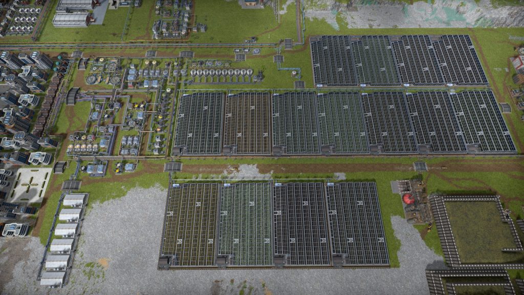 そしてついに待望の原子力発電!必要な量の燃料を生産するまでもかなりの時間がかかりました。しかし稼働後は大電力が得られるようになり、工場を拡張して生産量を増やせるようになりました。やっぱり天候に関わらず安定的に発電してくれるベース電源は重要ですね。