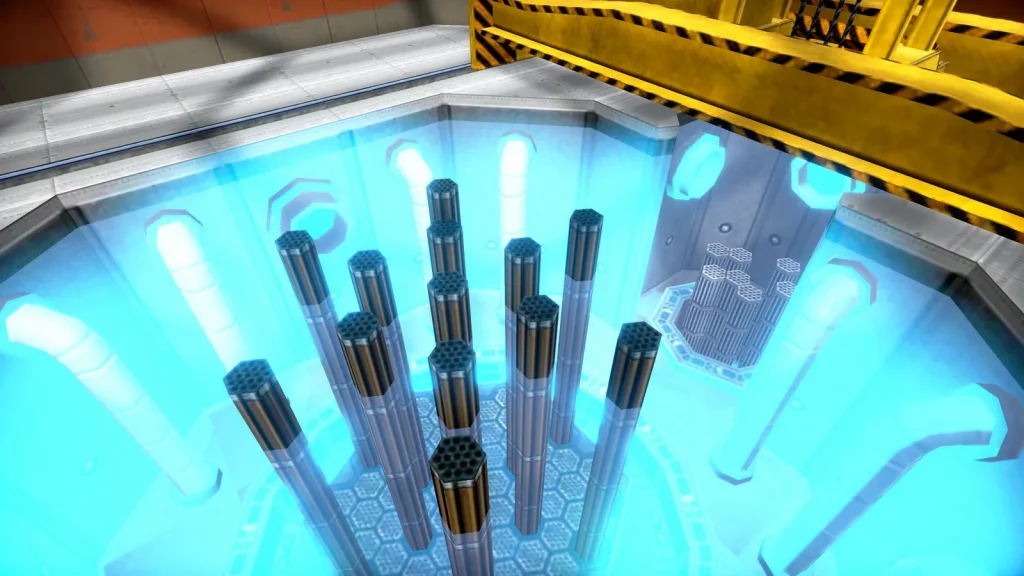 カメラを原発の中へズームしていくと、こんな細かいところまで作られてるんですよね。燃料棒を交換するアニメーションもあり、細部へのこだわりがすごいゲームです。