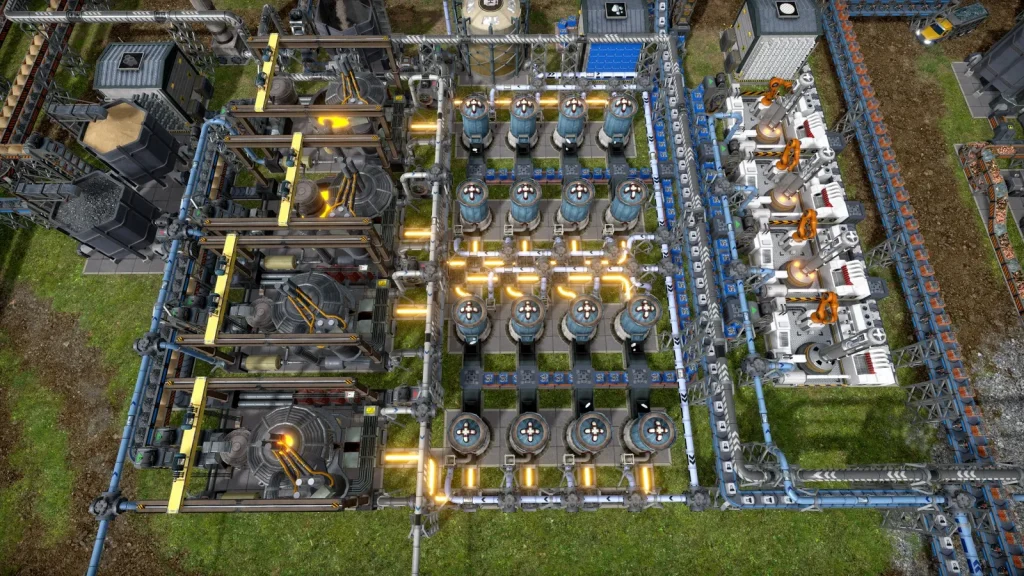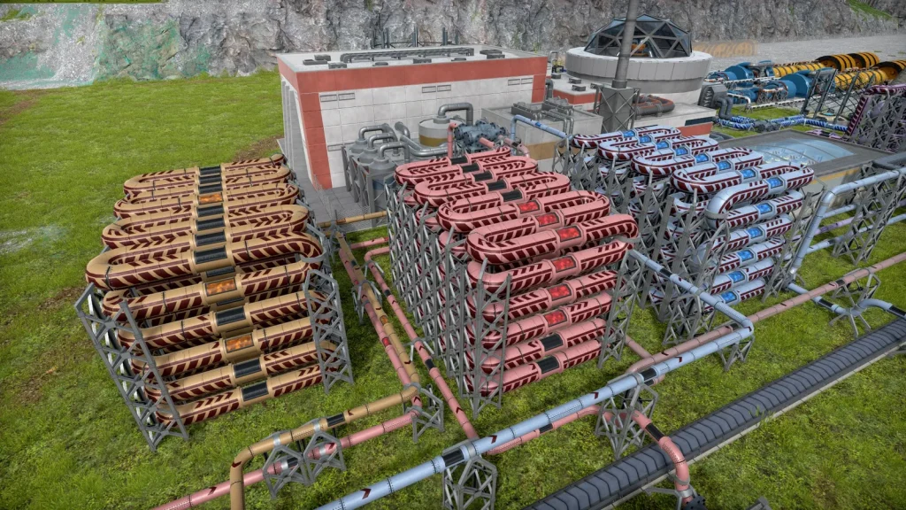 ゲーム最終版の高速増殖炉で使用する燃料はタンクに保存しておくことができません。そこで最も太い配管をひたすら敷き詰めてタンクのように扱うことにしました。これで672の容量があります。