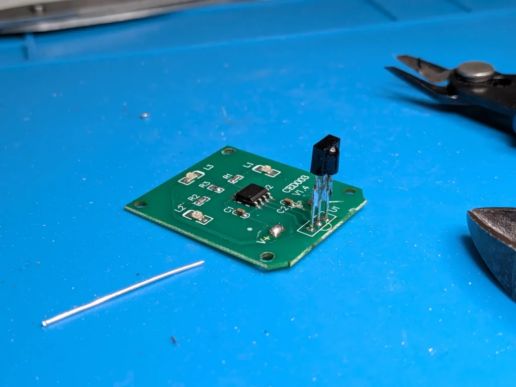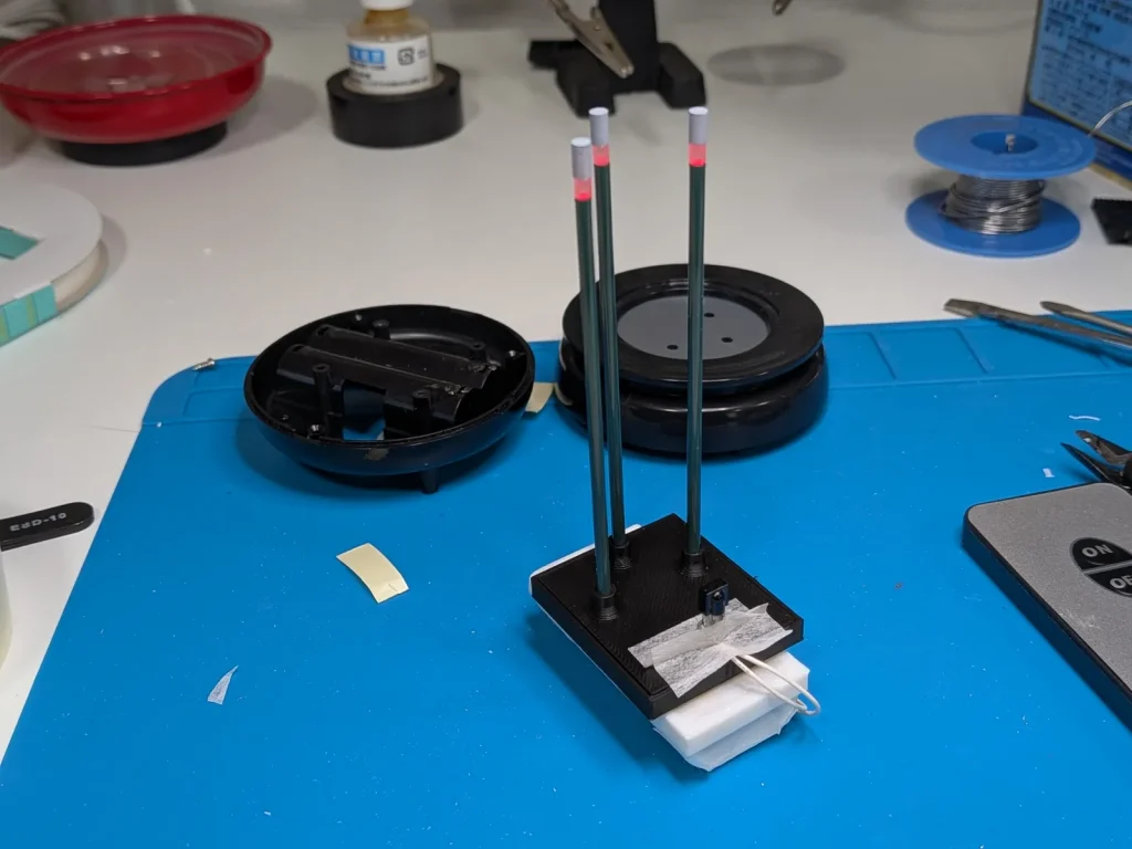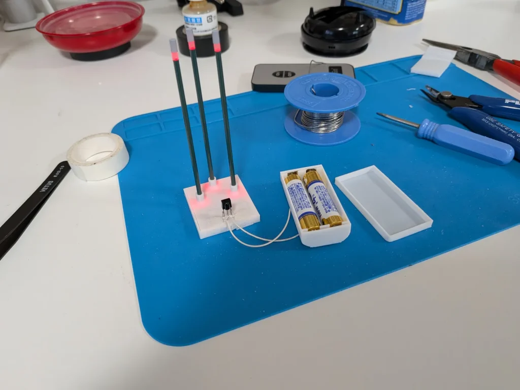 線香を挿して動作チェック。3V加えて光ればOKです。