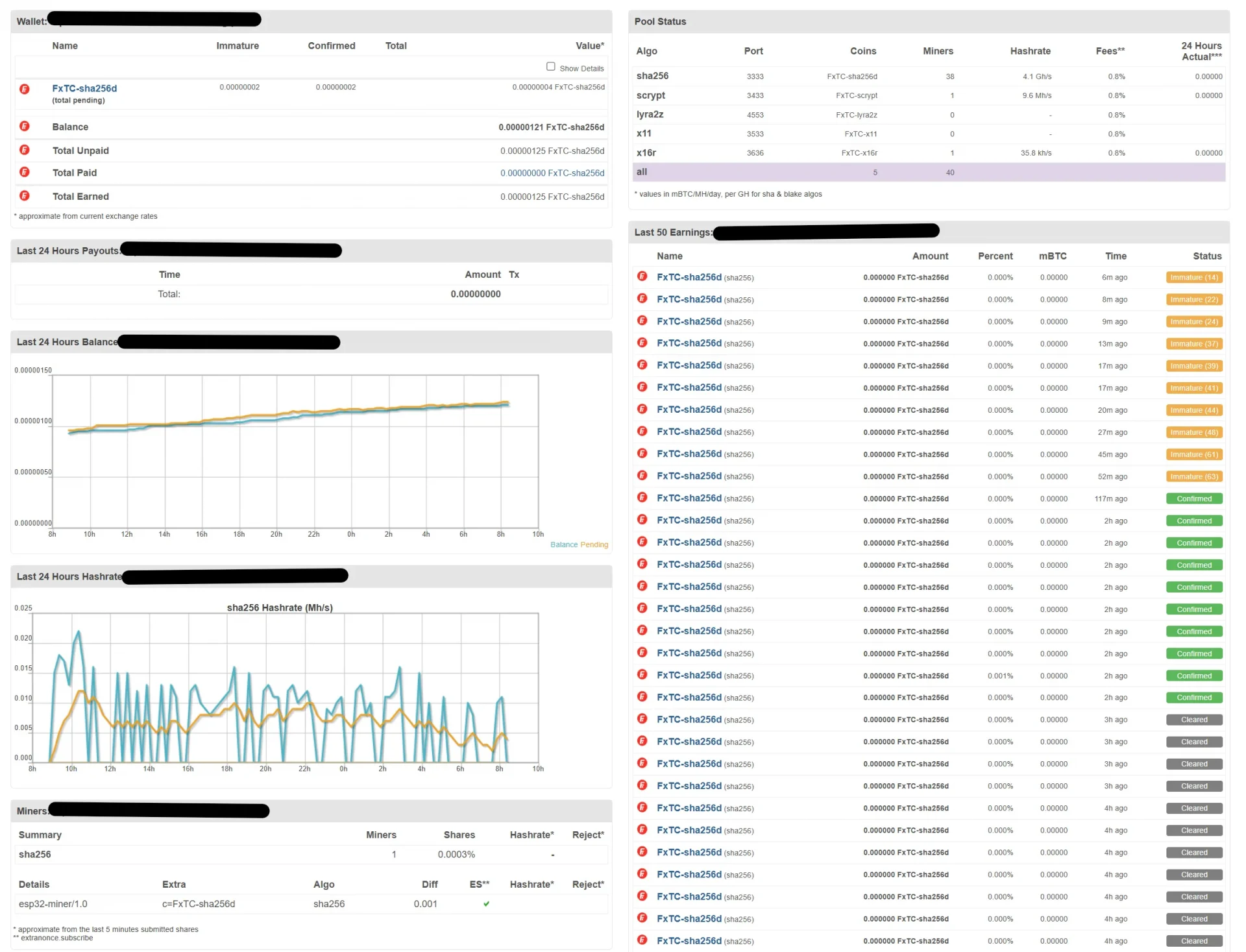 altpool.eu というマイニングプールで実際に試したところ、マイニングでき、報酬も 0.00000001 FxTCほどもらえました。
